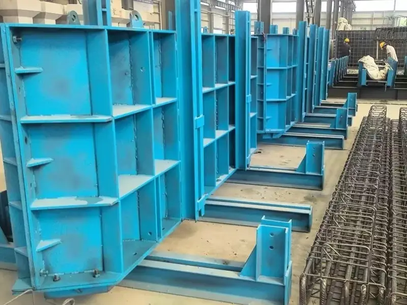 Stahlbetonschalungen bestehen aus Stahlplatten und Stahlprofilen und zeichnen sich durch hohe Festigkeit, Steifigkeit und Maßhaltigkeit aus. Die glatte Oberfläche der Stahlschalung gewährleistet eine hohe Qualität des gegossenen Betons und ermöglicht so eine wiederholte Verwendung und einen hohen Umschlag. Es wird häufig bei der Massenproduktion von Standardbauteilen eingesetzt, beispielsweise bei der Massenproduktion vorgefertigter Gebäudekomponenten und beim Bau modularer Gebäude.