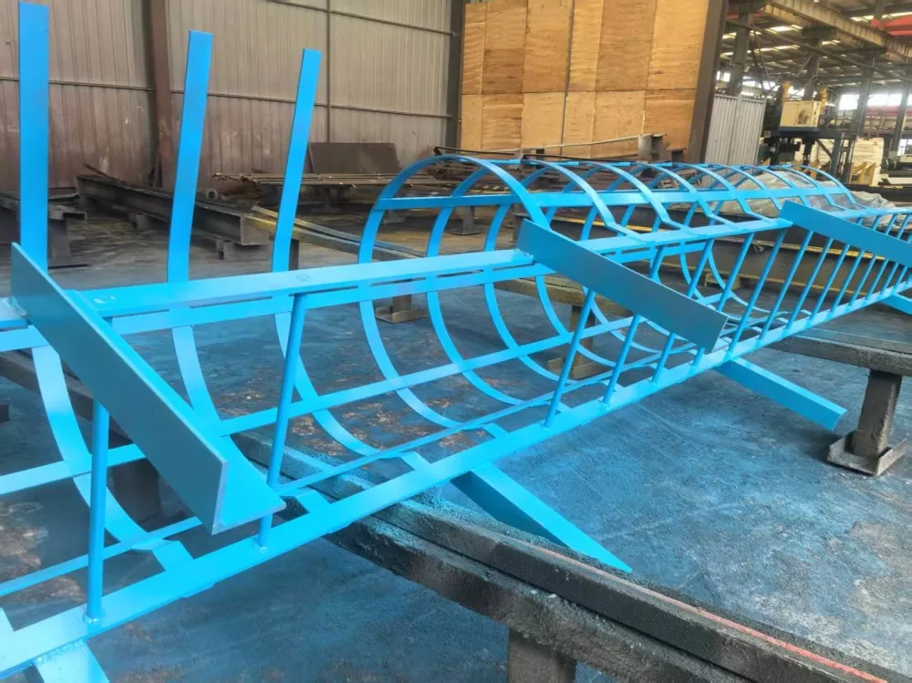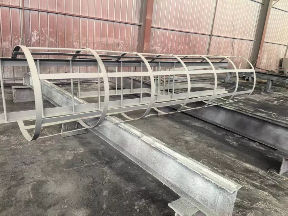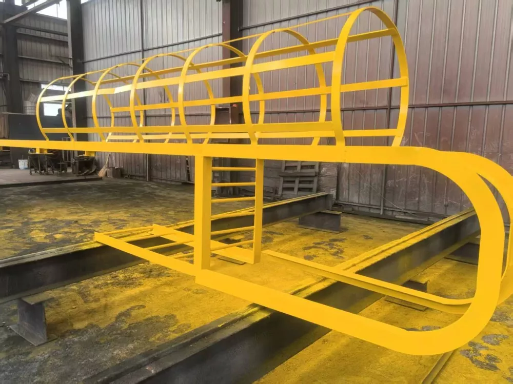 Materialspezifikationen: Häufig verwendete Materialien sind warmgewalzte Stahlprofile wie ∠50×5" Winkelstahl (5 mm dick, 50 mm Seitenlänge), ∠60×40×3" Rechteckrohre (60 mm x 40 mm Querschnitt, 3 mm Wandstärke) und Φ30×3" Rundrohre (30 mm Durchmesser, 3 mm Wandstärke). Das verwendete spezifische Material hängt von der Höhe und dem Gewicht der Leiter ab. Für Leitern über 6 Für eine Länge von ca. 10 m wird die Verwendung von mindestens ∠63×6 Zoll Winkelstahl oder einem Rohr ähnlicher Stärke empfohlen.